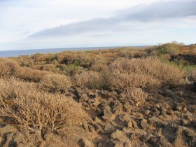 Gatunek roślinny powszechnie występujący w zachodnich i południowych strefach przybrzeżnych. Słodka tabaiba jest to krzew o okrągłym kształcie z gałęziami, które na końcach mają małe, zielone liście. Podczas pory suchej gubi je, a ponownie pojawiają się po pierwszych deszczach. Łatwo dostrzec ją na terytoriach przybrzeżnych wyspy, przede wszystkim na południu i zachodzie Teneryfy, gdzie wypełnia się kwiatami na przełomie jesieni i zimy. Lateks, który wydziela słodka tabaiba, był dawniej używany jako guma do życia i do zatykania beczek z winem.